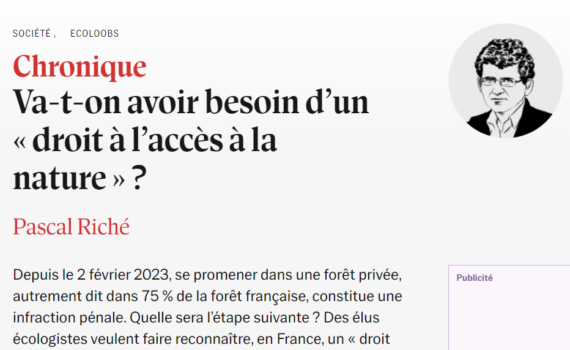 Revue de presse https://www.nouvelobs.com/societe/20240404.OBS86651/va-t-on-avoir-besoin-d-un-droit-a-l-acces-a-la-nature.html https://www.la-croix.com/planete/acces-a-la-nature-une-proposition-de-loi-pour-garantir-la-liberte-des-promeneurs-20240326 https://www.francetvinfo.fr/economie/emploi/metiers/restauration-hotellerie-sports-loisirs/une-proposition-de-loi-pour-le-libre-acces-a-la-nature-le-droit-d-aller-et-venir-est-aussi-un-droit-constitutionnel-plaide-le-depute-eelv-jeremie-iordanoff_6452635.html https://www.francebleu.fr/emissions/l-invite-du-6-9-france-bleu-isere/hauts-de-chartreuse-le-depute-eelv-de-l-isere-jeremie-iordanoff-defend-un-droit-d-acces-a-la-nature-4659745 https://alpinemag.fr/droit-acces-nature-les-deputes-disent-non-a-la-depenalisation https://www.ledauphine.com/societe/2024/03/27/droit-a-la-nature-la-proposition-de-loi-des-verts-pour-depenaliser-l-acces-a-la-nature-rejetee https://www.ledauphine.com/societe/2024/03/28/dur-revers-pour-le-droit-a-la-nature