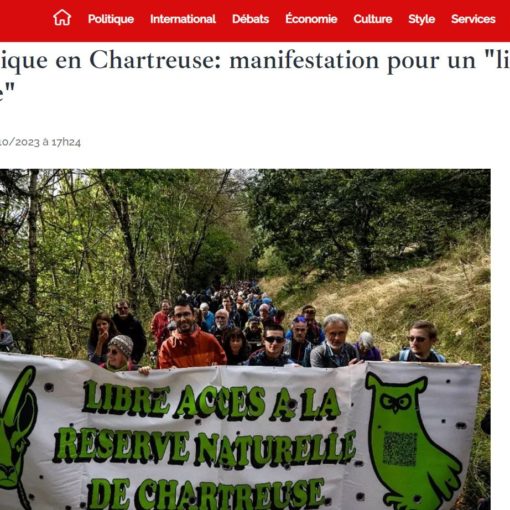La Revue Dessinée a publié récemment une bande dessinée intitulée “Le Seigneur des Panneaux”, racontant l’histoire du conflit d’accès à la réserve naturelle des Hauts de Chartreuse et la mobilisation du collectif Chartreuse.