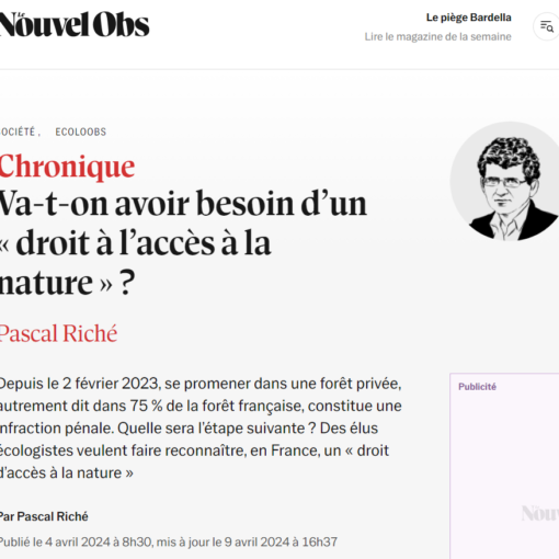 Revue de presse https://www.nouvelobs.com/societe/20240404.OBS86651/va-t-on-avoir-besoin-d-un-droit-a-l-acces-a-la-nature.html https://www.la-croix.com/planete/acces-a-la-nature-une-proposition-de-loi-pour-garantir-la-liberte-des-promeneurs-20240326 https://www.francetvinfo.fr/economie/emploi/metiers/restauration-hotellerie-sports-loisirs/une-proposition-de-loi-pour-le-libre-acces-a-la-nature-le-droit-d-aller-et-venir-est-aussi-un-droit-constitutionnel-plaide-le-depute-eelv-jeremie-iordanoff_6452635.html https://www.francebleu.fr/emissions/l-invite-du-6-9-france-bleu-isere/hauts-de-chartreuse-le-depute-eelv-de-l-isere-jeremie-iordanoff-defend-un-droit-d-acces-a-la-nature-4659745 https://alpinemag.fr/droit-acces-nature-les-deputes-disent-non-a-la-depenalisation https://www.ledauphine.com/societe/2024/03/27/droit-a-la-nature-la-proposition-de-loi-des-verts-pour-depenaliser-l-acces-a-la-nature-rejetee https://www.ledauphine.com/societe/2024/03/28/dur-revers-pour-le-droit-a-la-nature