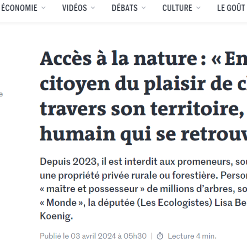 Pour bien démarrer l’année 2024, une tribune est parue dans le journal Le Monde pour s’opposer aux restriction d’accès à la nature […]