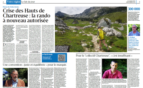 Télégrenoble a réalisé un reportage suite à la réouverture de 2 sentiers balisés dans la Réserve des Hauts de Chartreuse, une avancée modeste car les sentiers non balisés restent interdits… Le Collectif Chartreuse est notamment interrogé. Les débats autour des Hauts de Chartreuse sont clos, ou presque…Alors que la réserve […]
